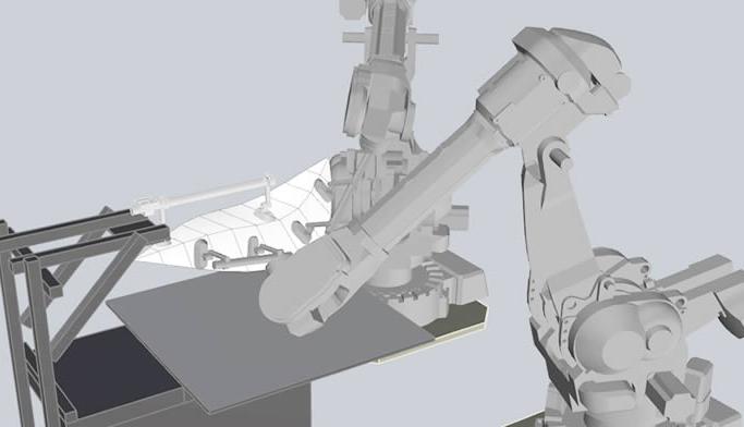 Learning outcomes: build the facade at 1:1; understanding of fold simulation of developable surfaces; practical use of Godzilla to check manufacturing constraints of robots; card models and animations of your design to take with you.
